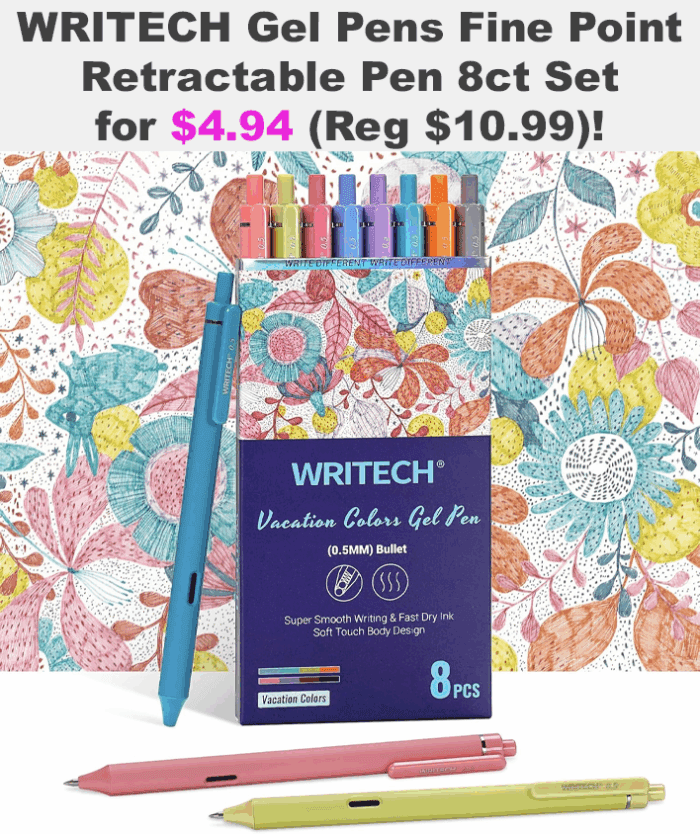 WRITECH Gel Pens Fine Point Retractable Pen 8ct Set for $10.99