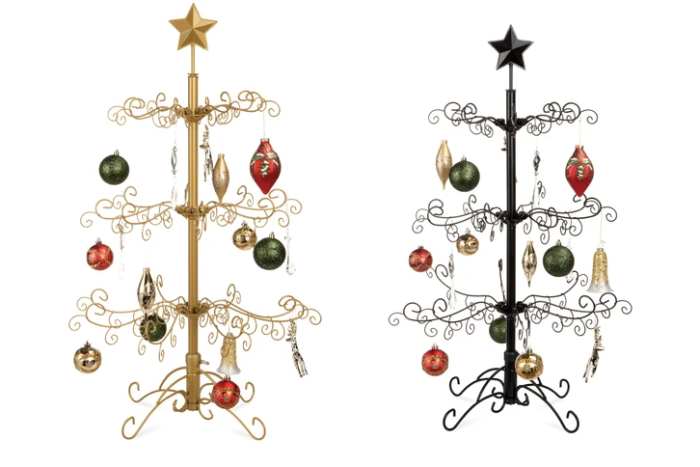 - SHOWCASE ORNAMENTS: Folding branches are held securely in place by a set of iron hinges, creating a safe space to display your most precious ornaments