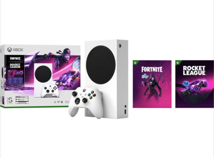 - Get the all-digital Xbox Series S – Fortnite & Rocket League Bundle featuring the Midnight Drive Pack, 1,000 V-Bucks, and 1,000 Rocket League credits.