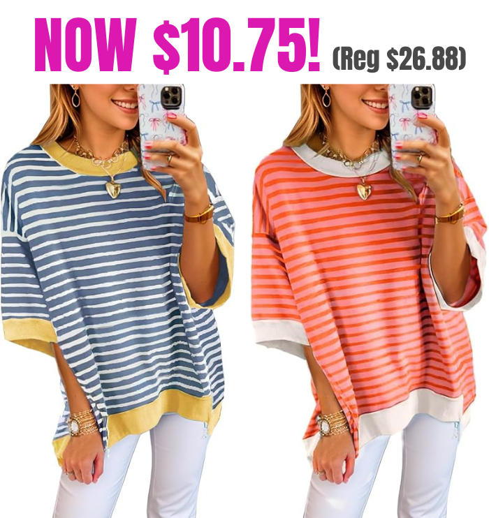 XINWEIZZ Oversized Striped Knit Shirts for $26.88