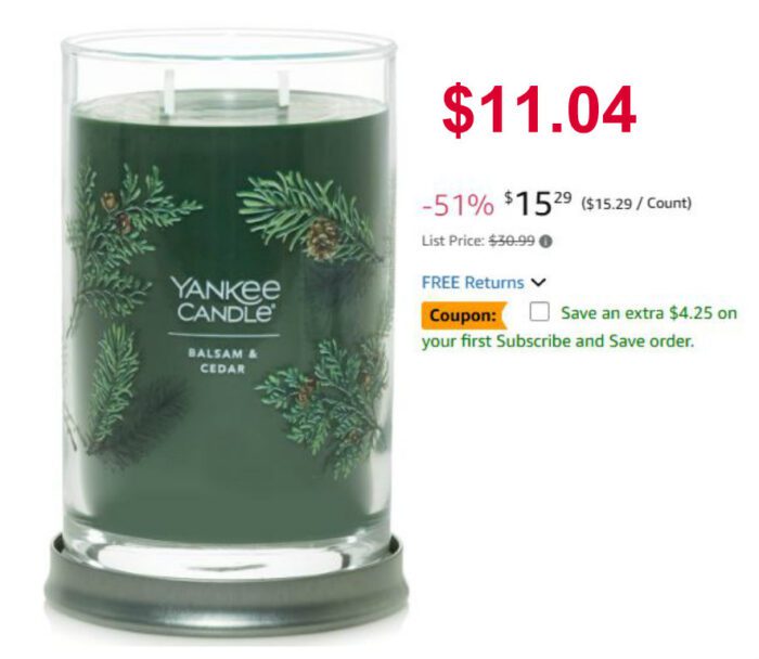 Yankee Candle Balsam & Cedar Scented, Signature 20oz Large Tumbler 2-Wick Candle $16.99 (reg $30.99)