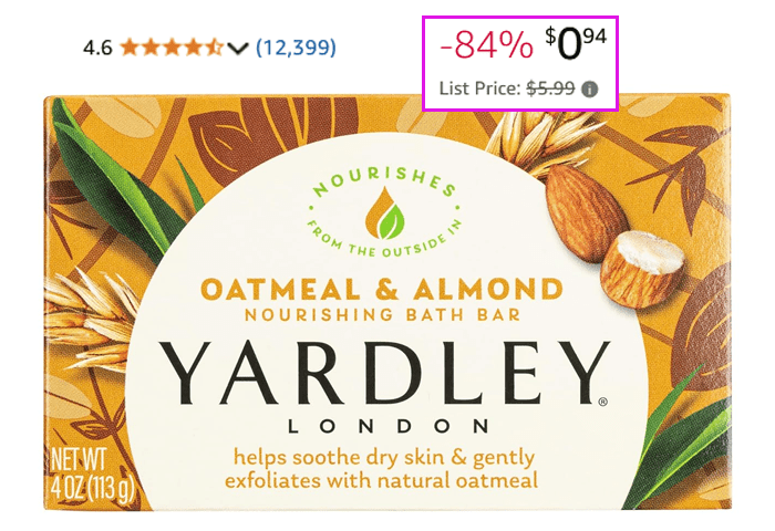 Yardley London Nourishing Bath Soap Bar Oatmeal & Almond for $0.99 (Reg $5.99)