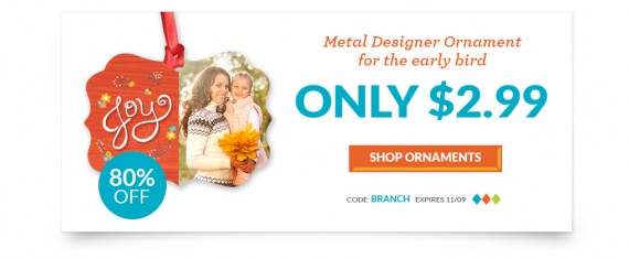 New customers can also get a Metal Designer Ornament for $2.99 (regularly $14.99)! Just make sure you order your ornament before the cards. Use code BRANCH at checkout. Shipping is $3.99.