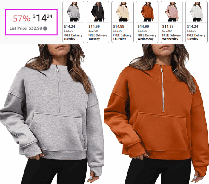 Zeagoo Cropped Zipper Hoodie for $14.24 – $14.99 (Reg $32.99)!