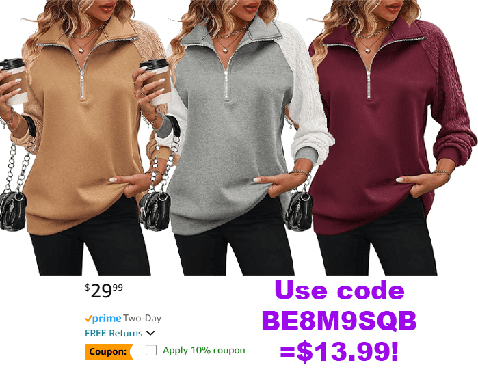 Zeagoo Quarter Zip Pullover Fleece with Cable Knit Sleeves for $29.99