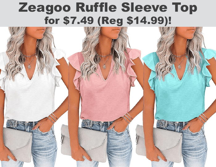 Zeagoo Ruffle Sleeve Top for $9.99 (Reg $14.99)