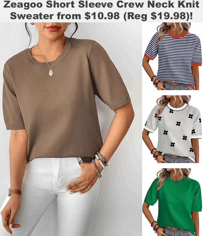 Zeagoo Short Sleeve Crew Neck Knit Sweater for $10.98 – $13.20 (Reg $19.98 – $25.98)!