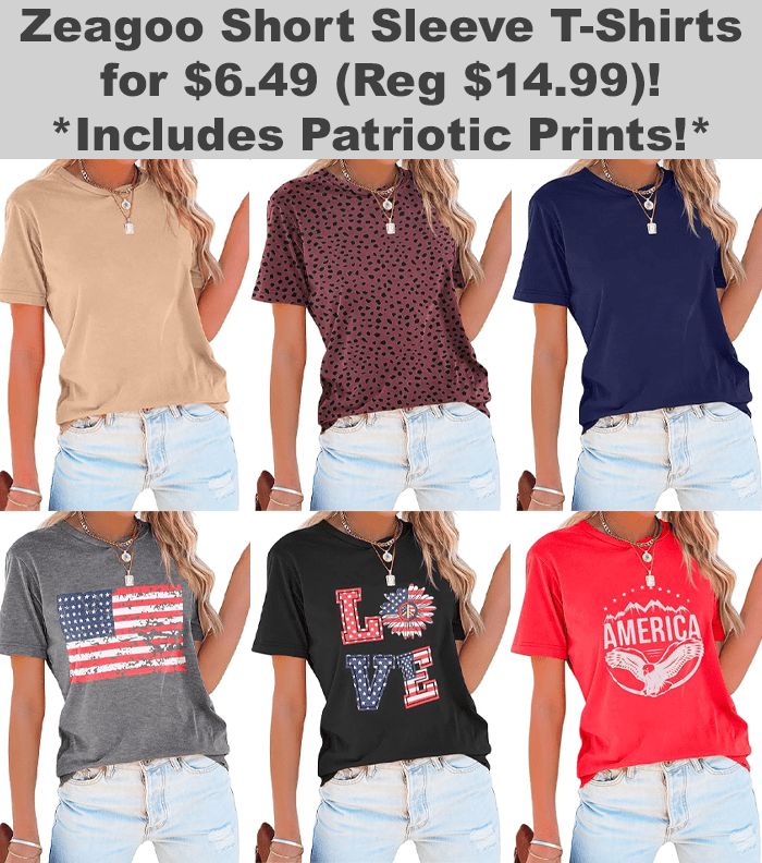 Zeagoo Short Sleeve T-Shirts for $12.99 (Reg $14.99)! *Includes Patriotic Prints!*