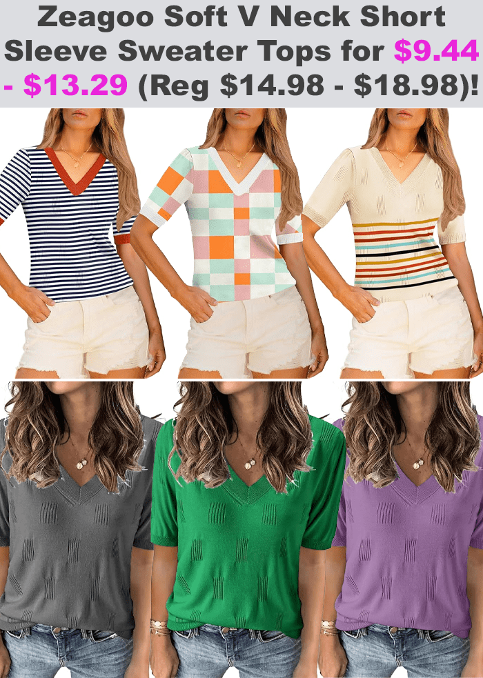 Zeagoo Soft V Neck Short Sleeve Sweater Tops for $13.48 – $18.98
