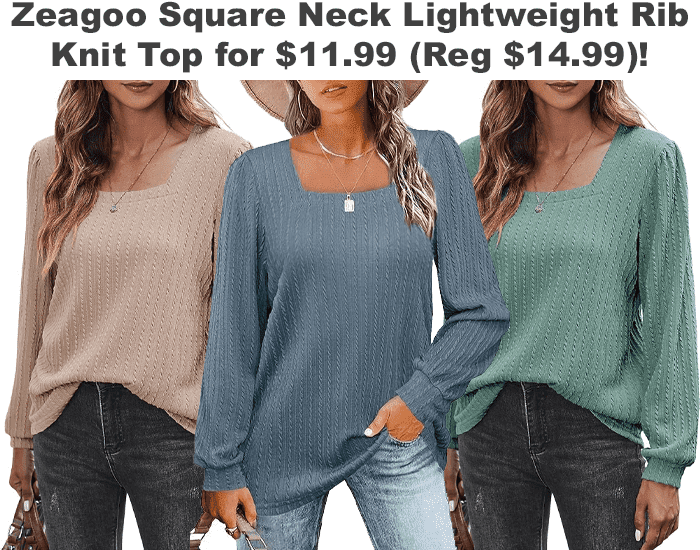 Zeagoo Square Neck Lightweight Rib Knit Top for $14.99