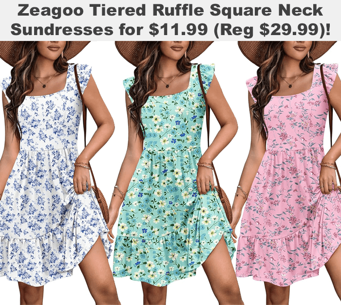 Zeagoo Tiered Ruffle Square Neck Sundresses for $29.99