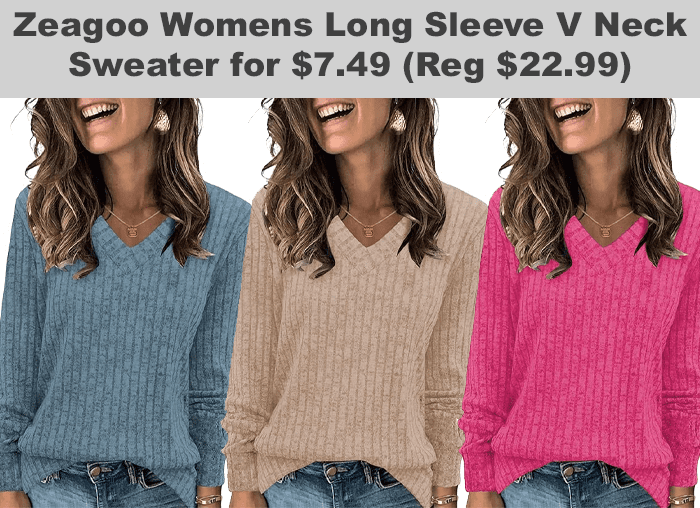 Zeagoo Womens Long Sleeve V Neck Sweater for $19.99 (Reg $22.99)
