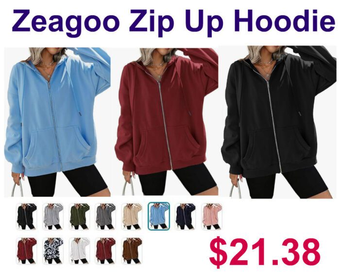 Zeagoo Women’s Full Zip-Up Hoodie $32.89