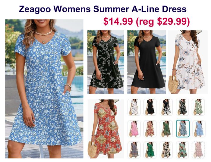 Zeagoo Womens Summer A-Line Dress with Pockets $29.99