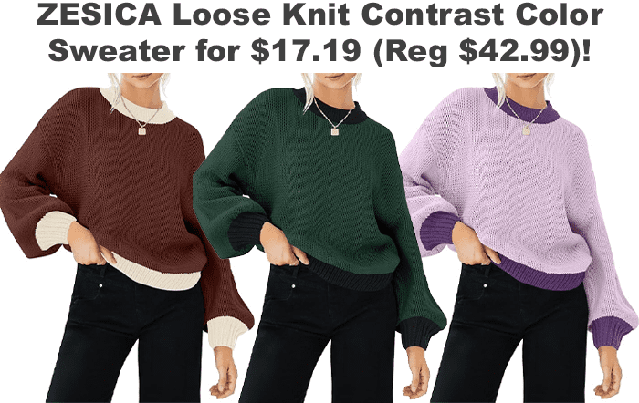 ZESICA Loose Knit Contrast Color Sweater for $17.19 (Reg $42.99)!