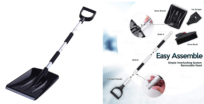 Keep this multi-tool handy during the snowy season as it converts from brush to shovel to scraper. Its interchangeable heads allow you to scoop snow off your path and get to the car. Then, wipe snow from windshields and scrape ice off for a clear view.